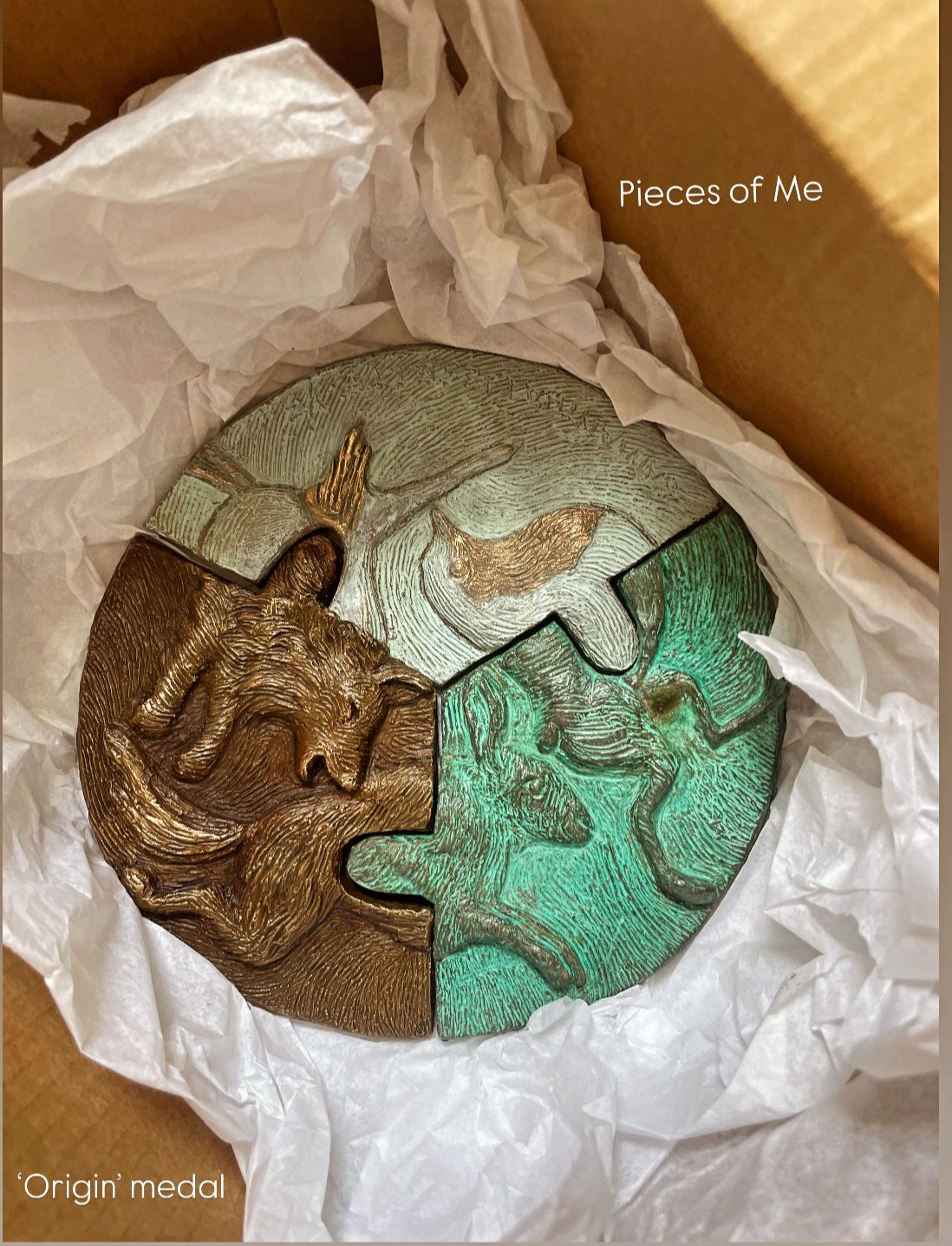 Medal about my ancestral origins from England, Ireland & Croatia as depicted by the national animal of the region. This work is a jigsaw puzzle piecing myself in combinations of my ancestral gene pool.